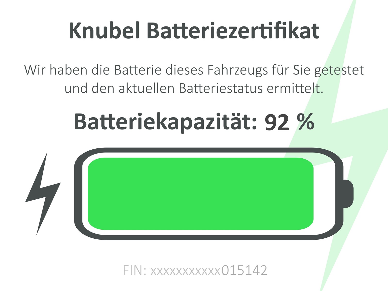 - Das Fahrzeug verfügt über ein Batterie Zertifikat.