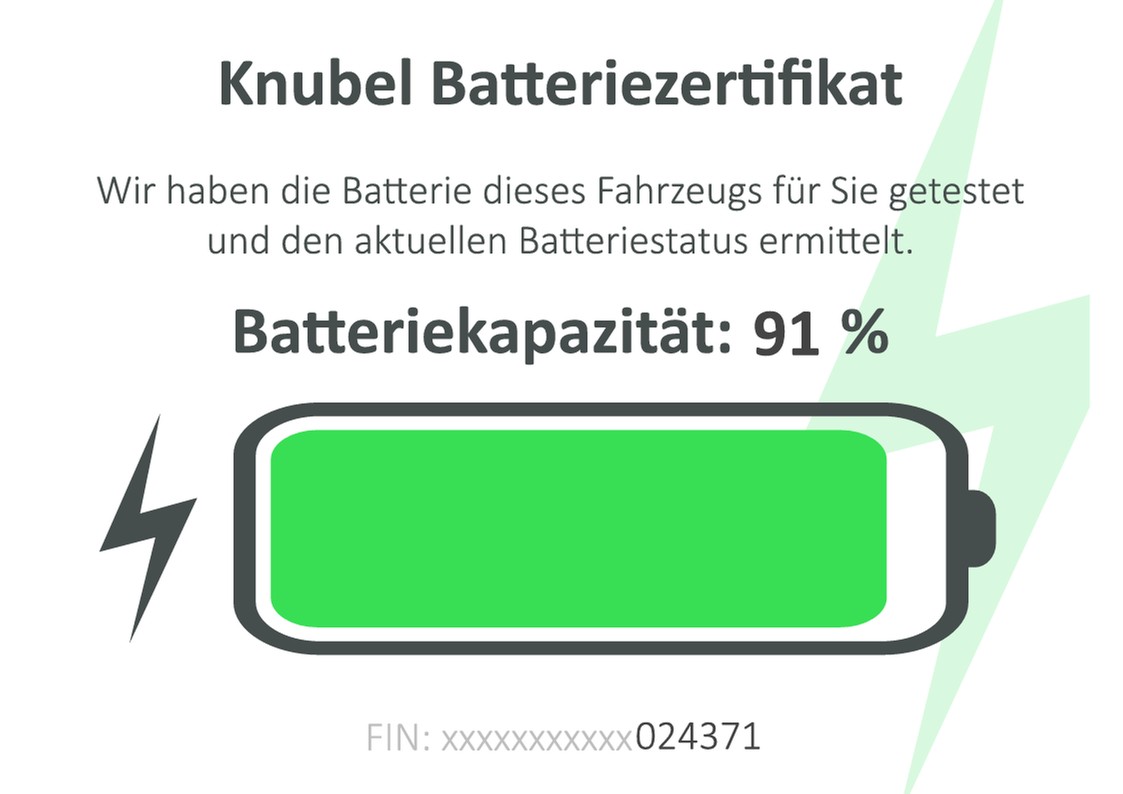 - Das Fahrzeug verfügt über ein Batterie Zertifikat.